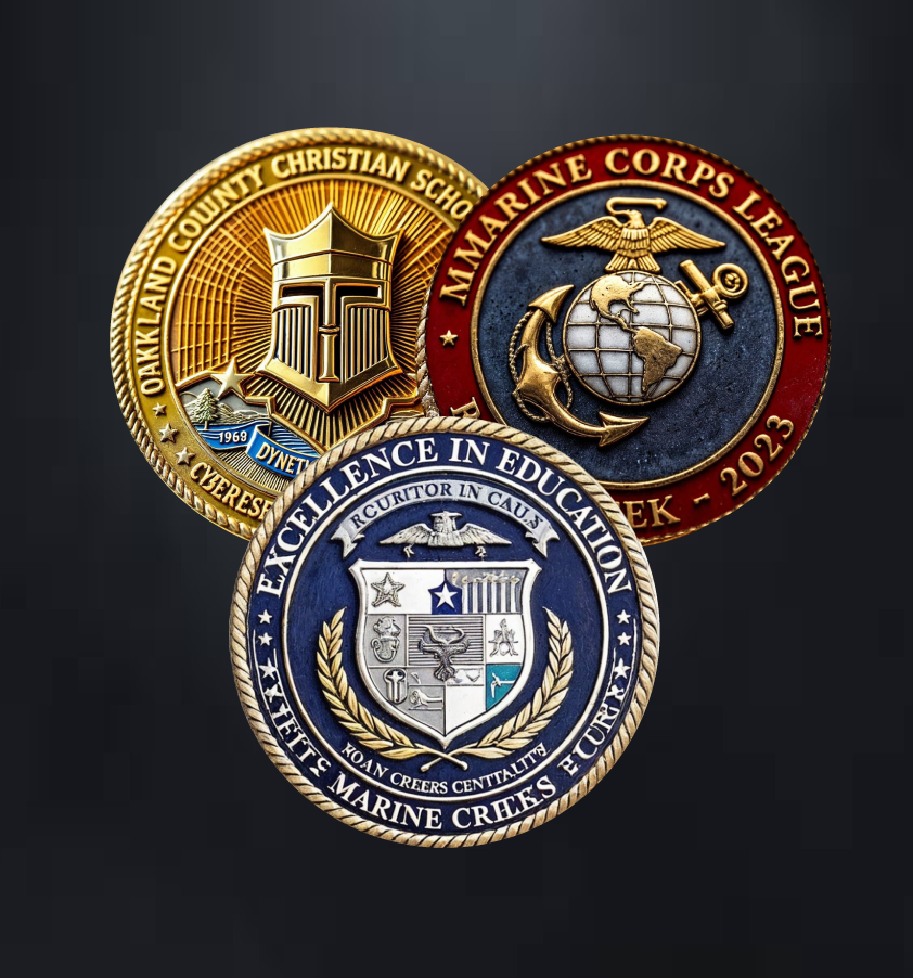 Each die struck coin comes alive with vivid detail. We work with you to ensure your design is perfectly captured, whether you’re celebrating an anniversary or marking a special event. Let’s create something that reflects the value, strength, and uniqueness of your event.